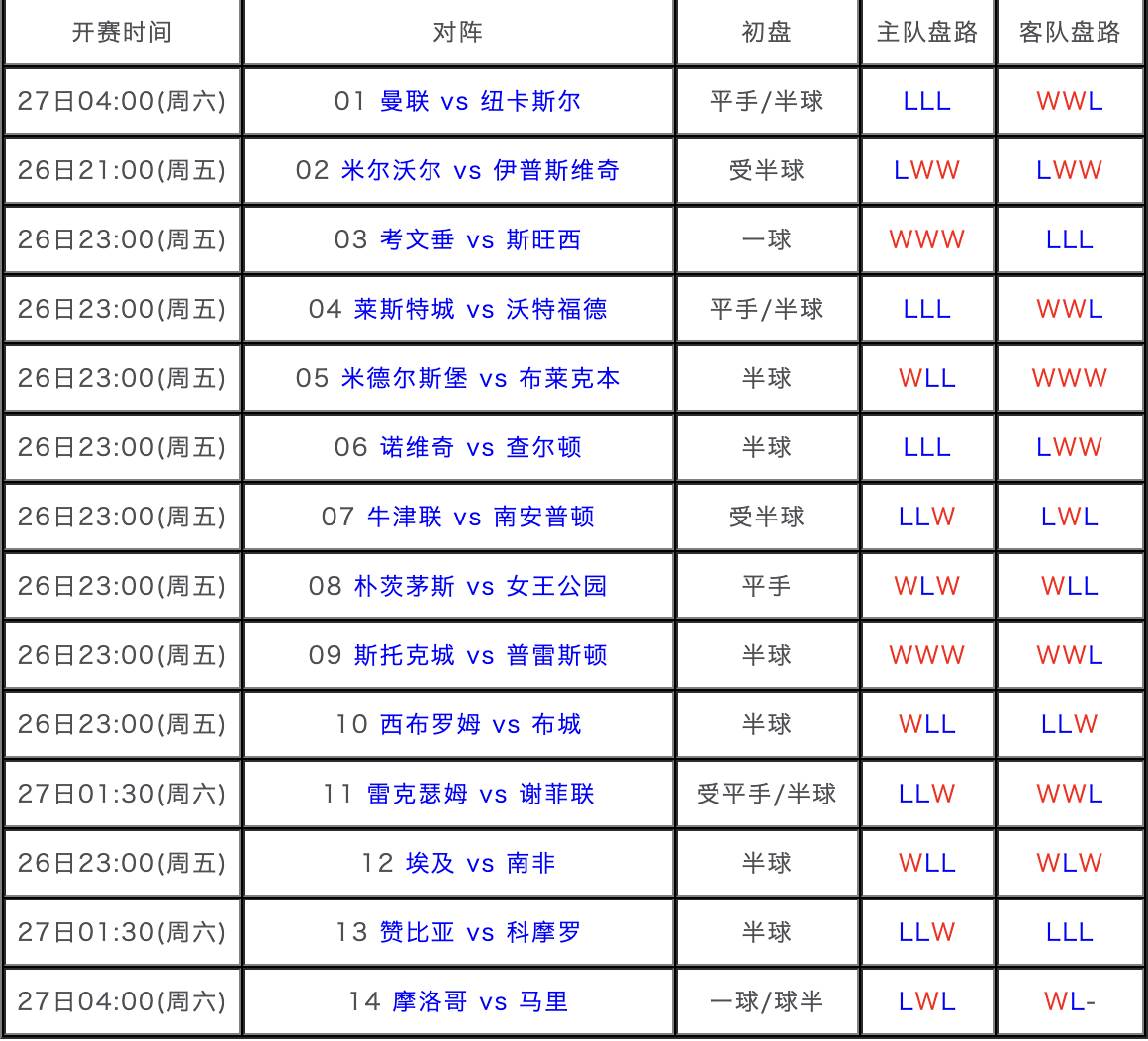 相同盘口:曼联平半球全输 考文垂一球盘强势