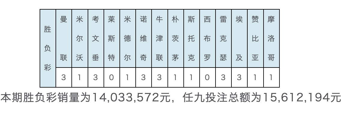 彩果方面,本期足彩小冷频出,仅4场比赛打出首赔,共9场赛果赔率在3倍以上。英冠米尔沃尔与伊普斯互交白卷、莱斯特1-2不敌沃特福德、米堡与布莱克本0-0战平、牛津联2-1力克南安普敦、朴茨茅斯1-1平女王公园、斯托克城平普雷斯顿、西布朗1-2负于布城、雷克瑟姆5-3大胜谢菲联。非洲杯赛场,埃及1-0小胜南非,赞比亚、摩洛哥皆平局;英超曼联1-0小胜纽卡。