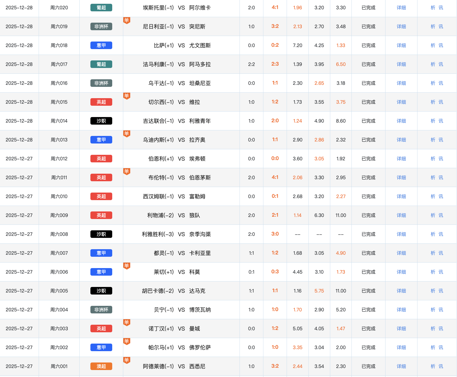 2025年12月27日周六竞彩足球开奖赛果