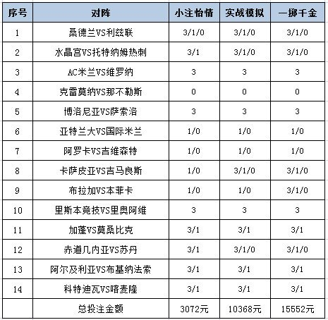 先来看看本期重点场次:米兰主场面对维罗纳给出一球球半的让步幅度,让步十足,对于米兰有利,本场可以关注米兰取胜;那不勒斯客场面对克雷莫纳给出一球的让步幅度,对于那不勒斯还是有高看的,本场可以博客胜;国米客场面对亚特兰大给出半球的让步幅度,对于国米还是信心不足,本场建议重点防平。
