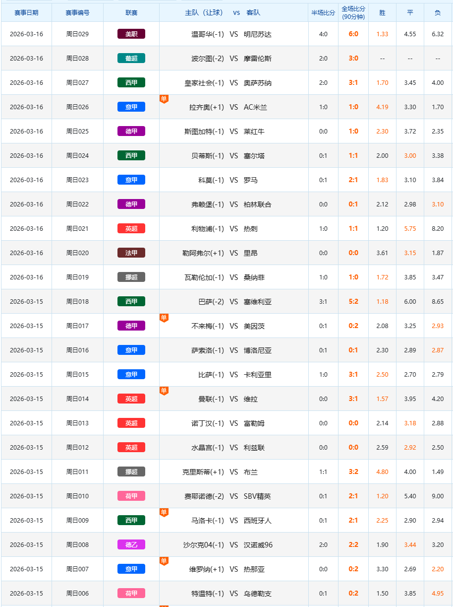 3月15日足球赛果开奖