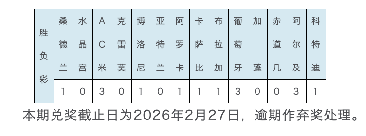 彩果方面,本期足彩小冷不断,其中最大冷门来自非洲杯赛场,加蓬2-3不敌莫桑比克造4.7倍冷负。其余比赛中,英超赛场,桑德兰1-1战平利兹联,热刺客场1-0小胜水晶宫;意甲AC米兰3-0轻取维罗纳,那不勒斯、国米均在客场全取三分;葡超赛场,布拉加主场2-2战平本菲卡,葡萄牙体育主场4-0大胜里奥维阿;非洲杯方面,科特迪瓦1-1喀麦隆,苏丹、阿尔及利亚均一球小胜。完整赛果如下:
