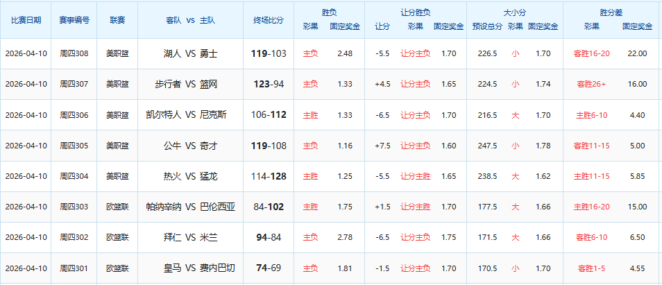4月9日篮球赛果开奖