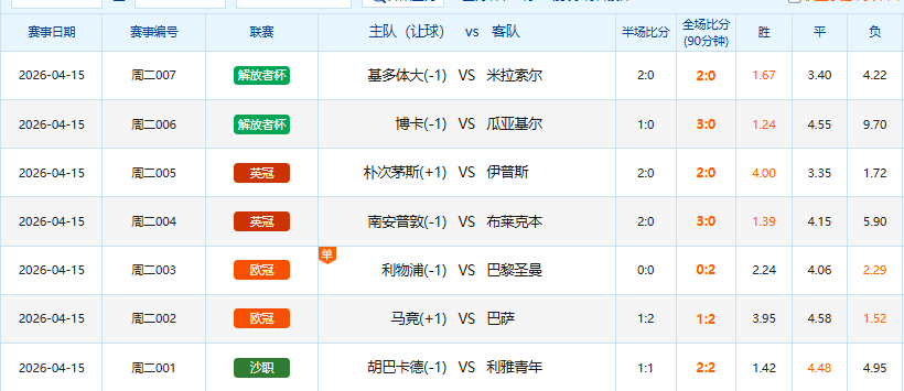4月14日足球赛果开奖