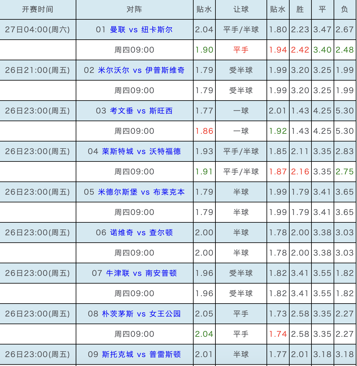 中国足球彩票胜负彩25193期澳盘最新赔率(09:00)