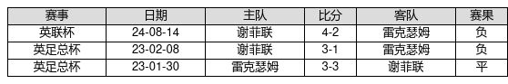 雷克瑟姆 VS 谢菲联两队近10年的交战次数为3场,雷克瑟姆0胜1平2负,赢球概率为0.0%,平局概率为33.3%,输球概率为66.7%。