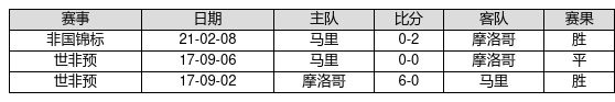 摩洛哥 VS 马里两队近10年的交战次数为3场,摩洛哥2胜1平0负,赢球概率为66.7%,平局概率为33.3%,输球概率为0.0%。