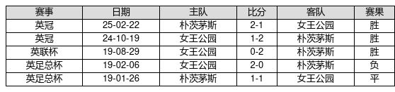 朴茨茅斯 VS 女王公园两队近10年的交战次数为5场,朴茨茅斯3胜1平1负,赢球概率为60.0%,平局概率为20.0%,输球概率为20.0%。