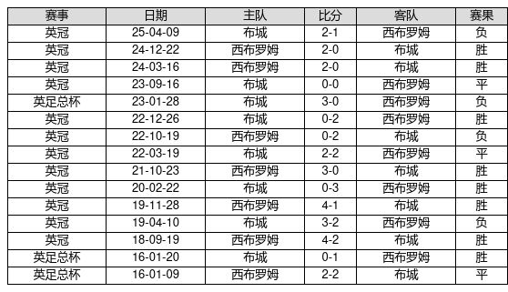 西布罗姆 VS 布城两队近10年的交战次数为15场,西布罗姆8胜3平4负,赢球概率为53.3%,平局概率为20.0%,输球概率为26.7%。