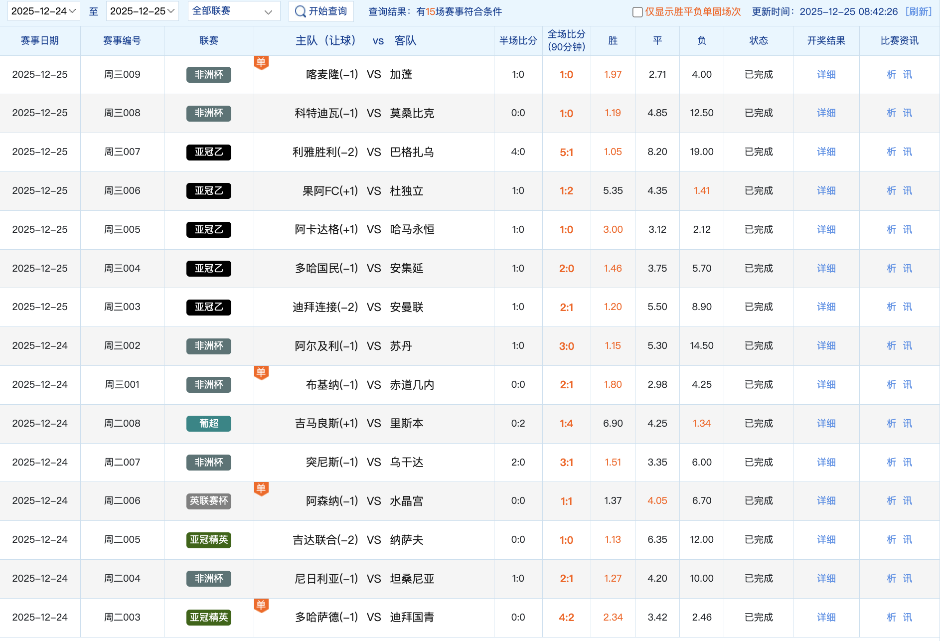 2025年12月24日-25日竞彩足球赛果