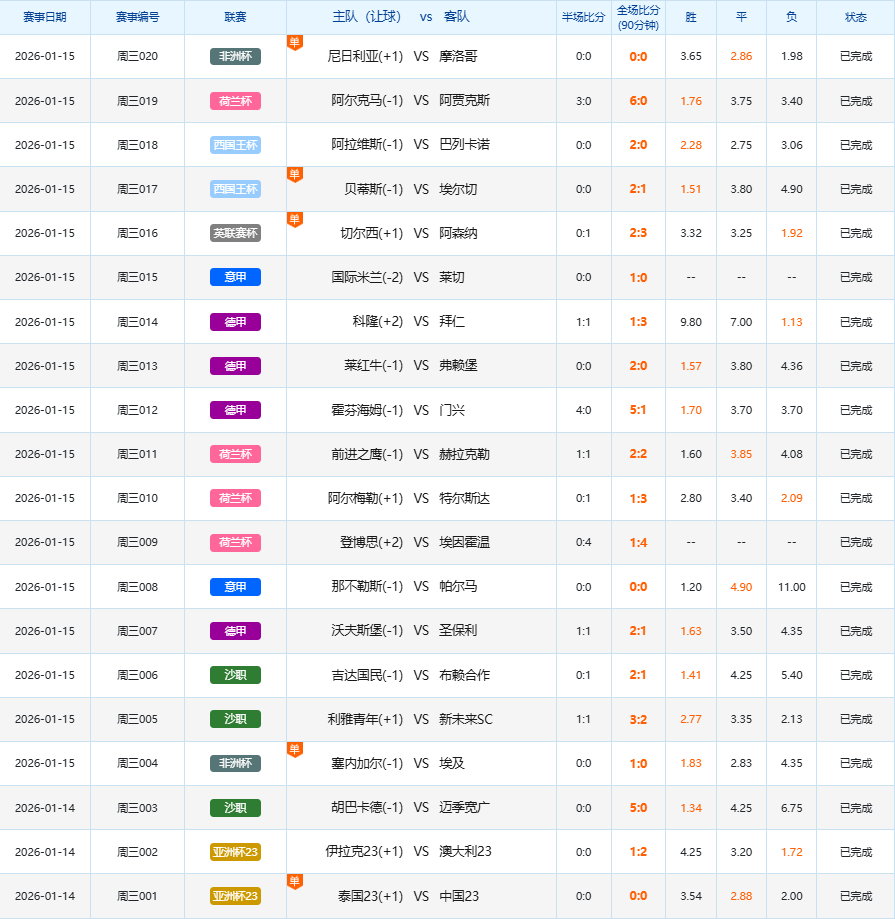1月14日足球赛果开奖
